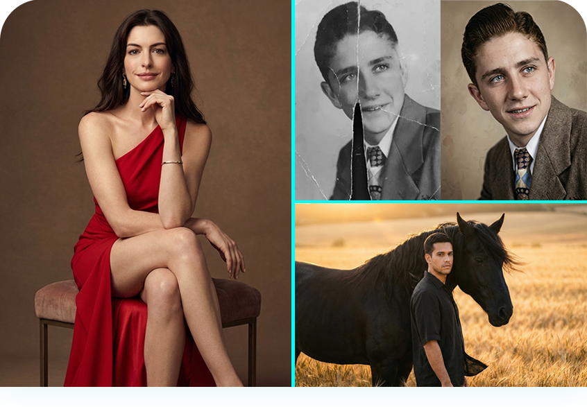 Domine a criação de fotos profissionais e restaure imagens antigas ou danificadas com qualidade impressionante. Tudo isso sem precisar de estúdio, sem equipamentos caros e sem contratar fotógrafo.